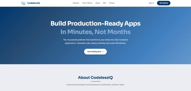 CodelessIQ AI is a next-generation development platform that redefines how software is built. By combining AI, automation, and collaborative tools, it enables users to create applications faster, smarter, and with minimal coding effort.